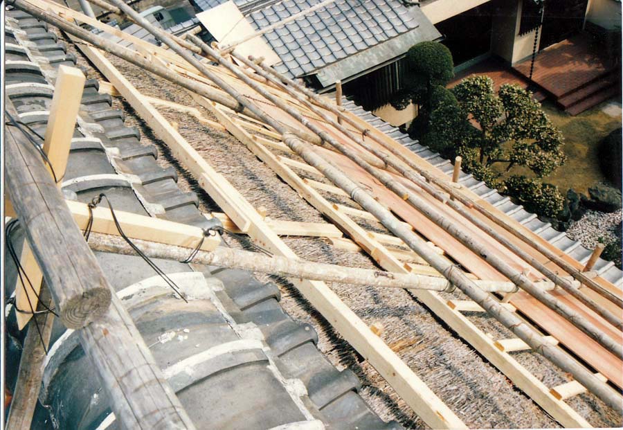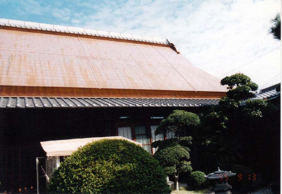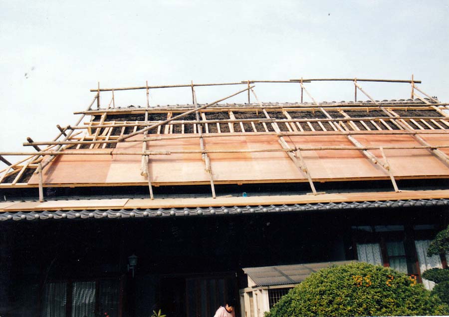 茅葺きの屋根に下地工事から銅板葺仕上げという大阪府内では少ない工事の一つであります。